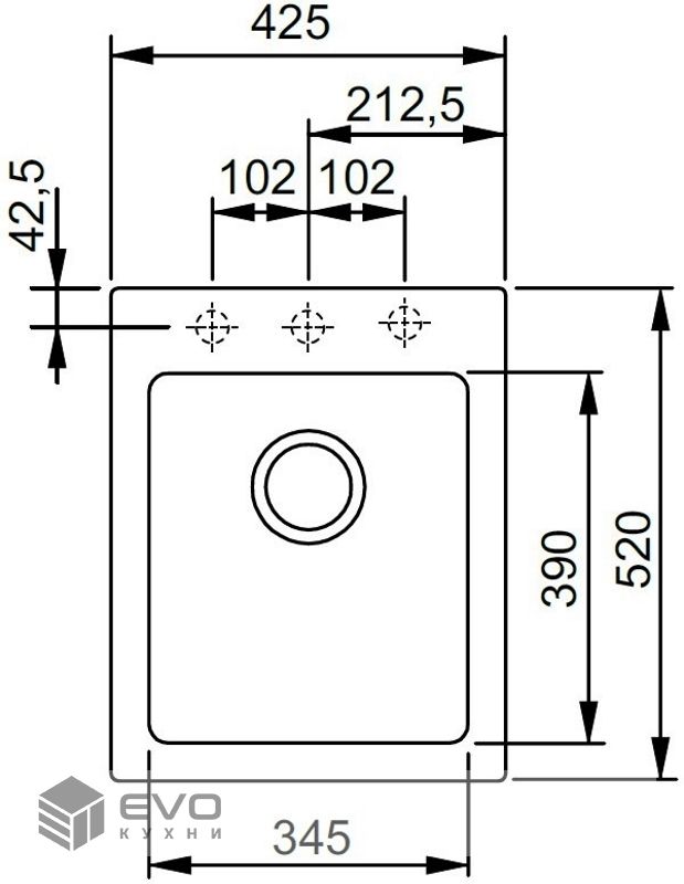• отверстие: 3 шт. предварительно сформированы с обратной стороны
