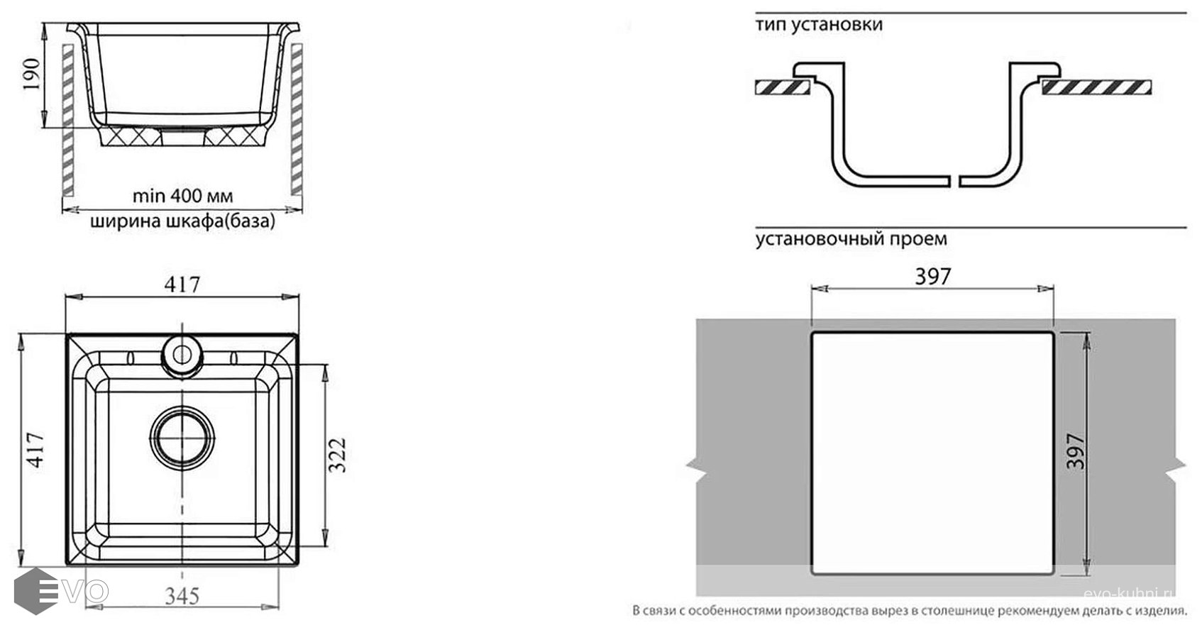 - Длина мойки 41.7 см