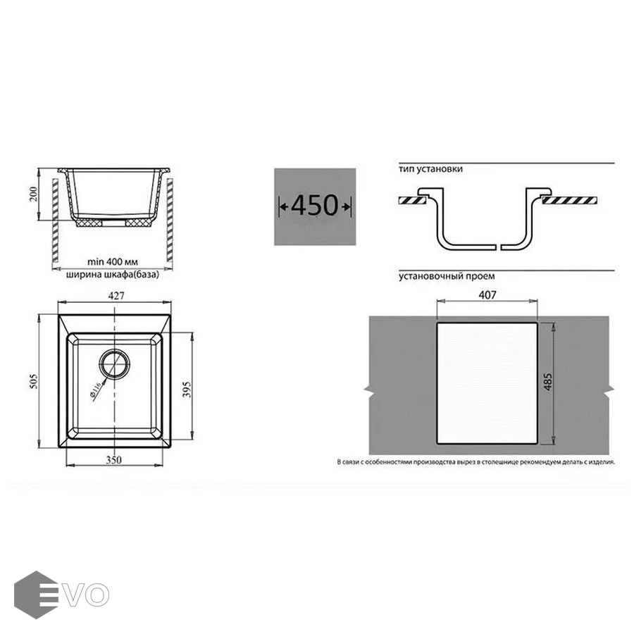 - Установочный проем: 407х485 мм