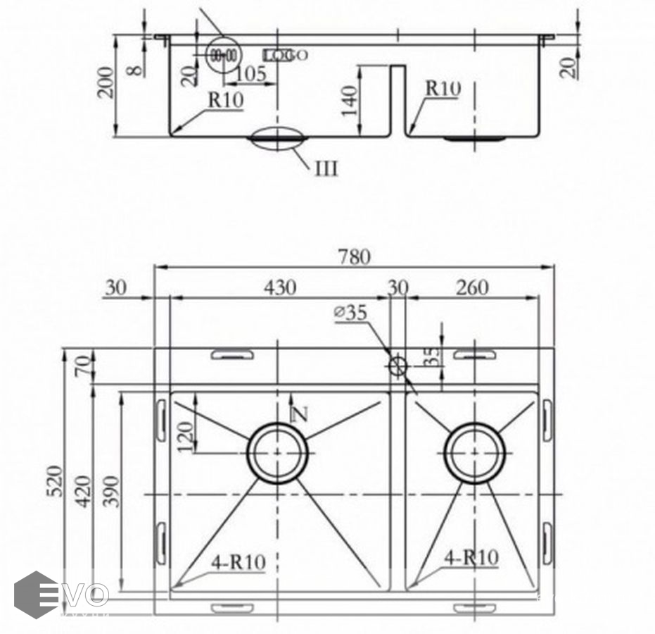 Мойка ZORG MASTER Dixi R-5278-L Кухонная мойка ZM Dixi R-5278-L производится из высококачественной легированной нержавеющей стали марки SUS 304.