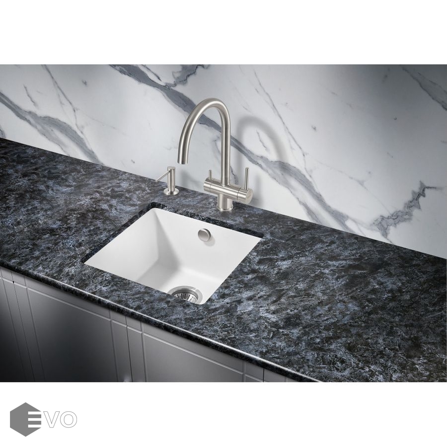 Высокая прочность. Кухонная мойка изготовлена из кварцевого композита — смеси гранита, кварца и полимерных смол — материала, устойчивого к различным механическим, температурным и химическим воздействиям. Это значит, что изделию не страшны царапины, абразивы, удары, кипяток, горячая посуда, бытовая химия. Оно не деформируется и не потеряет цвет в течение всего срока использования.