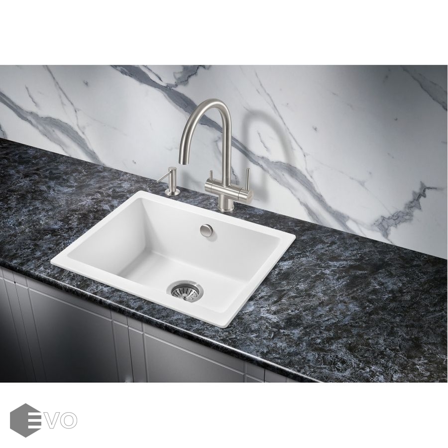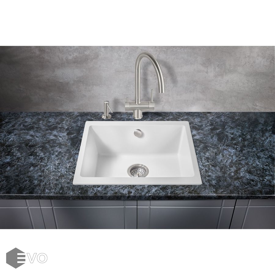 Прямоугольная мойка для кухни MILACIO Leon 55 Cuarzo (MC.77082) из искусственного камня, выполненная в белом матовом цвете, впишется в любой дизайн и станет ярким украшением вашей кухни.