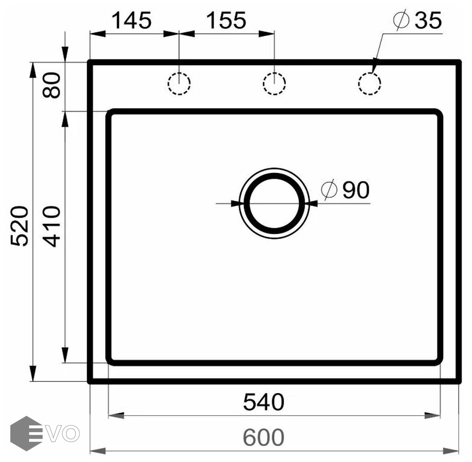- Форма мойки прямоугольная