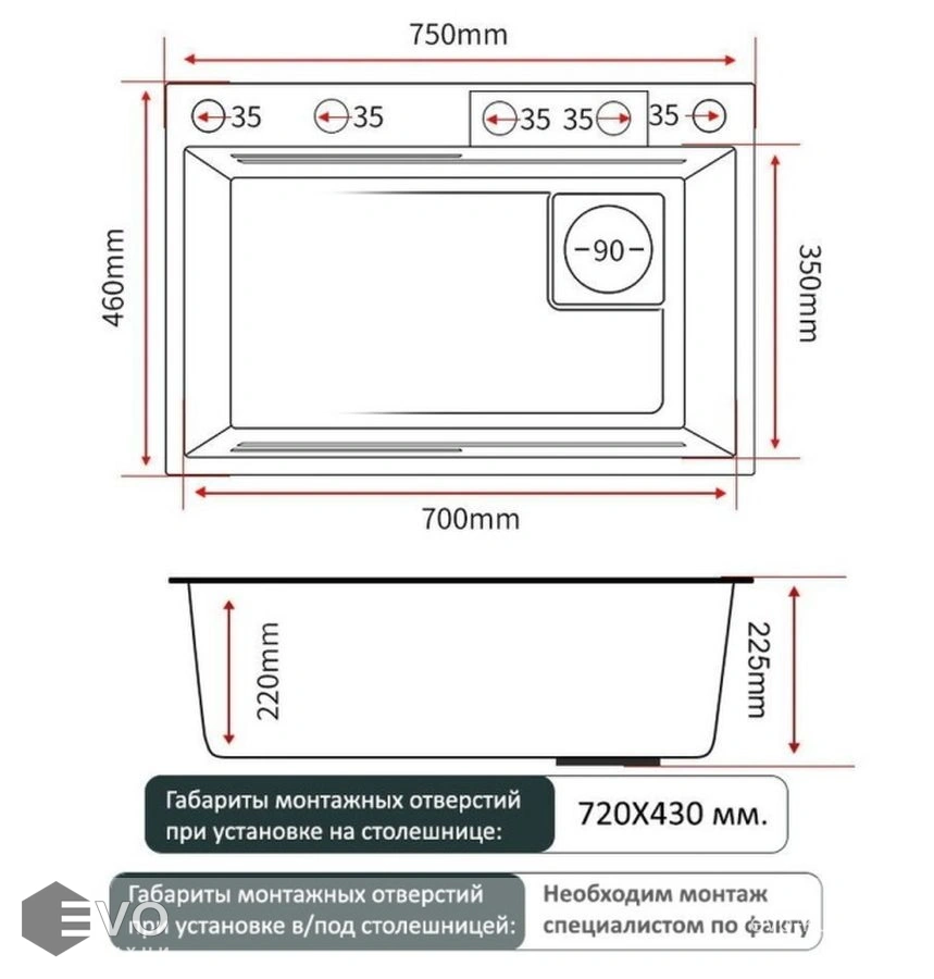 • СПОСОБ УСТАНОВКИ: Сверху на столешницу, Вровень со столешницей