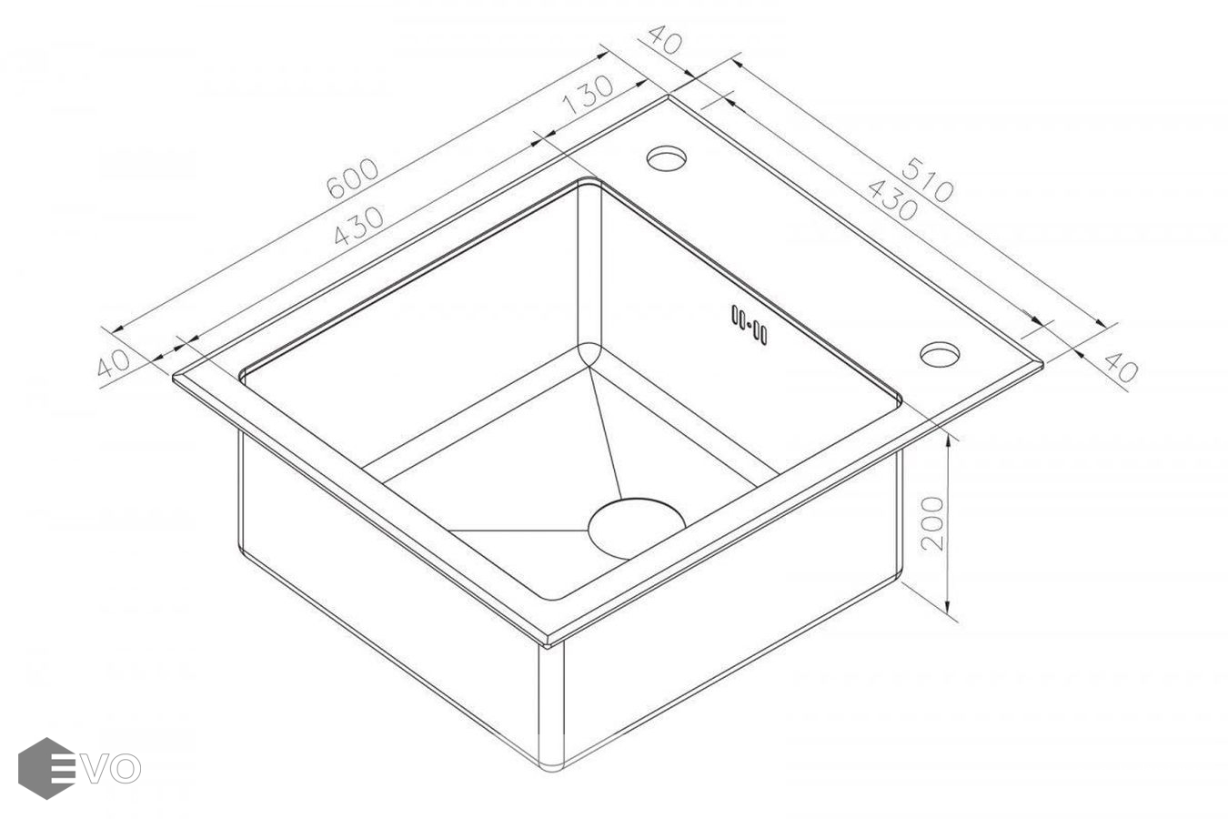 - Размеры мойки: 600х510 мм