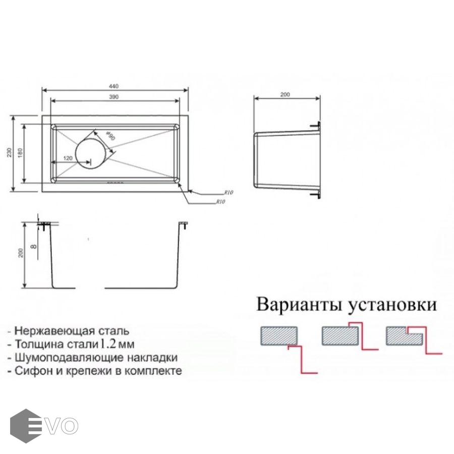 | Установка: | Врезная Интегрированная (в уровень со столешницей) Интегрированная (под столешницу) |