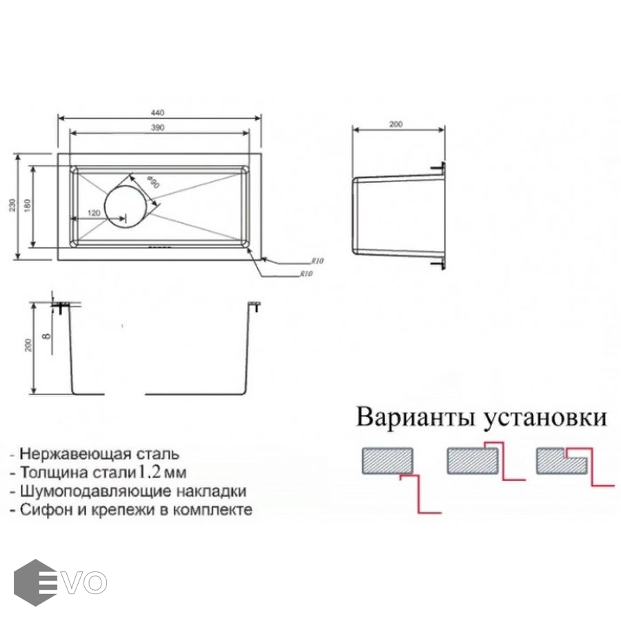 - Способ установки: Сверху на столешницу, Под столешницу, Вровень со столешницей