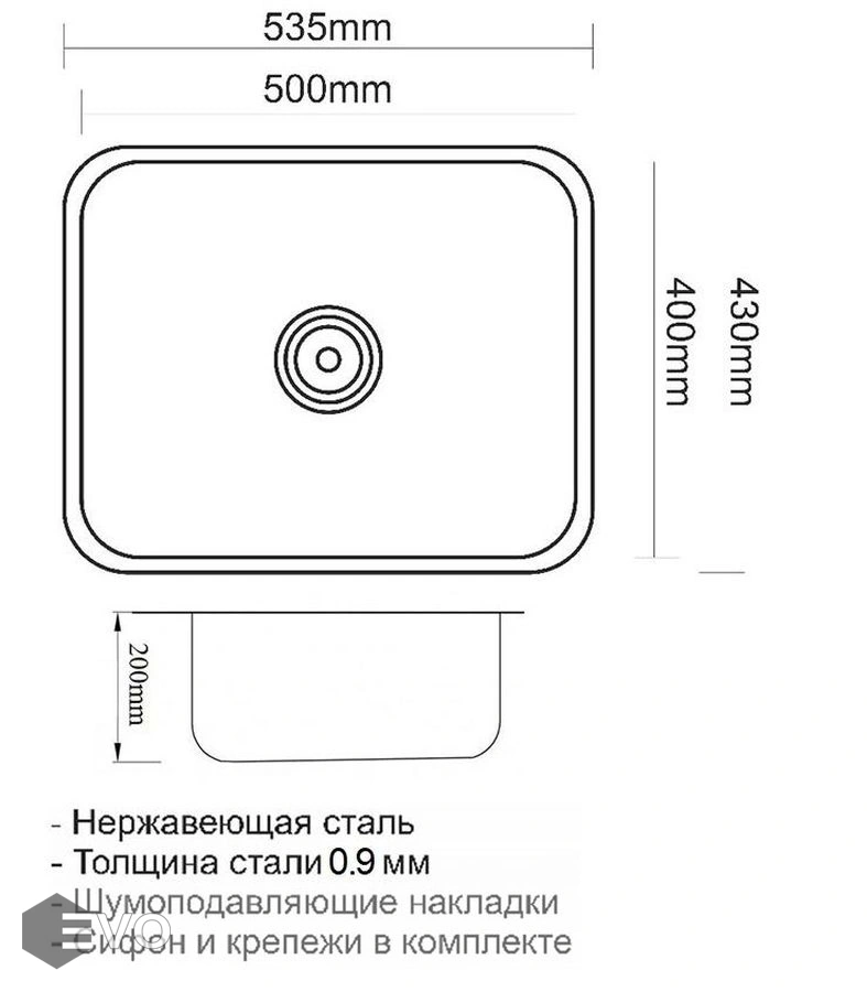 Комплект поставки: Мойка, сливная арматура с корзинчатым вентилем 3 1/2", сифон с отводом, комплект креплений.