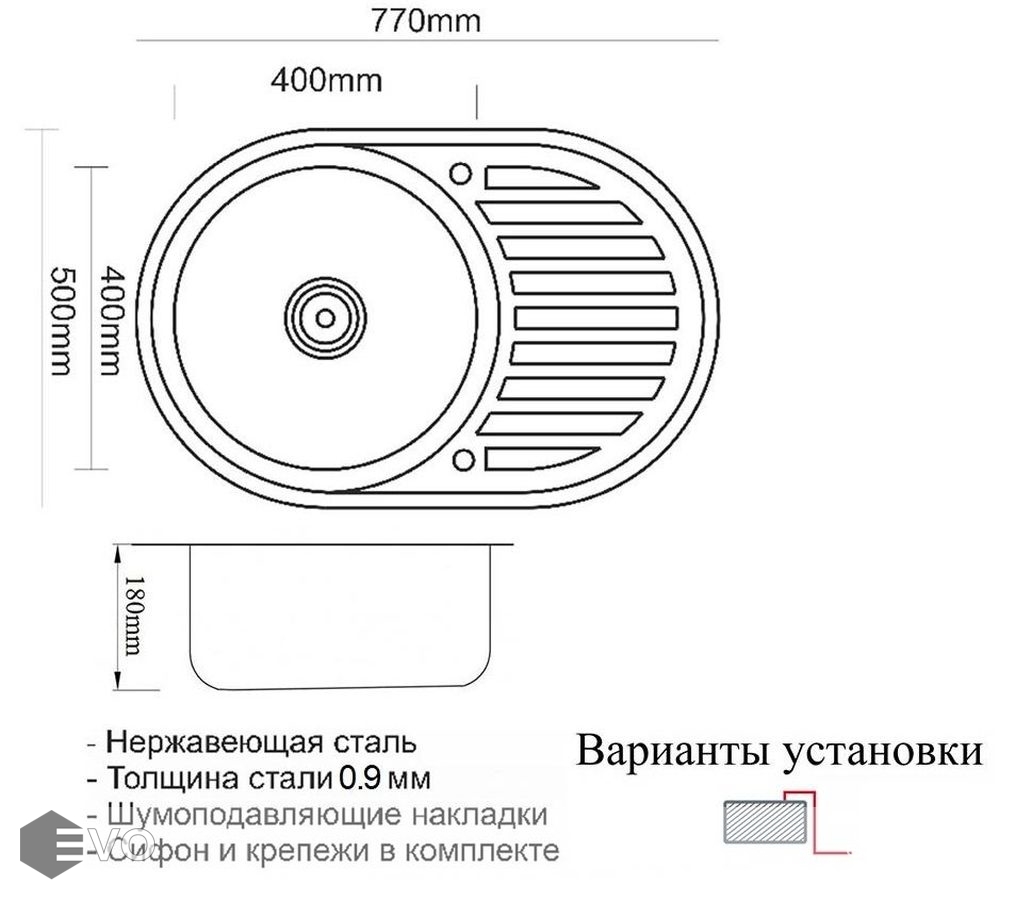 - СПОСОБ УСТАНОВКИ: Сверху на столешницу
