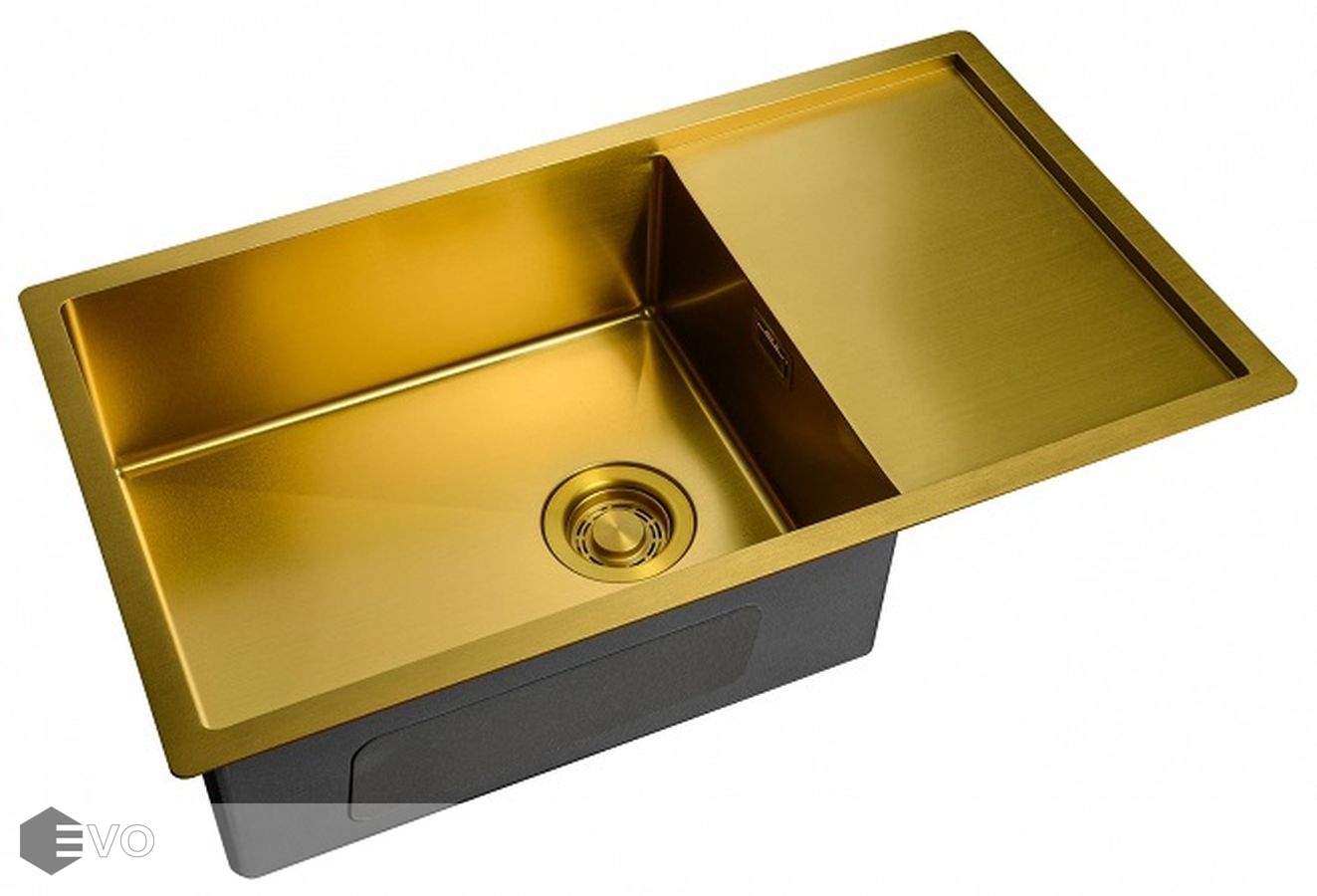 Сама мойка производится из высококачественной нержавеющей стали с последующей специальной PVD-обработкой. Покрытие наносится в специальной вакуумной камере и проникает в поверхность изделия на молекулярном уровне. Молекулы наносимого металла соединяются с нержавеющей сталью и получается красивая благородного цвета кухонная мойка. Такая поверхность прочна и долговечна, не стирается по прошествии времени.