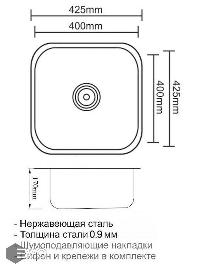 Кухонная мойка ZORG ZR 4040 производится из высококачественной нержавеющей стали марки SUS 304 с толщиной металла 0,9 мм.