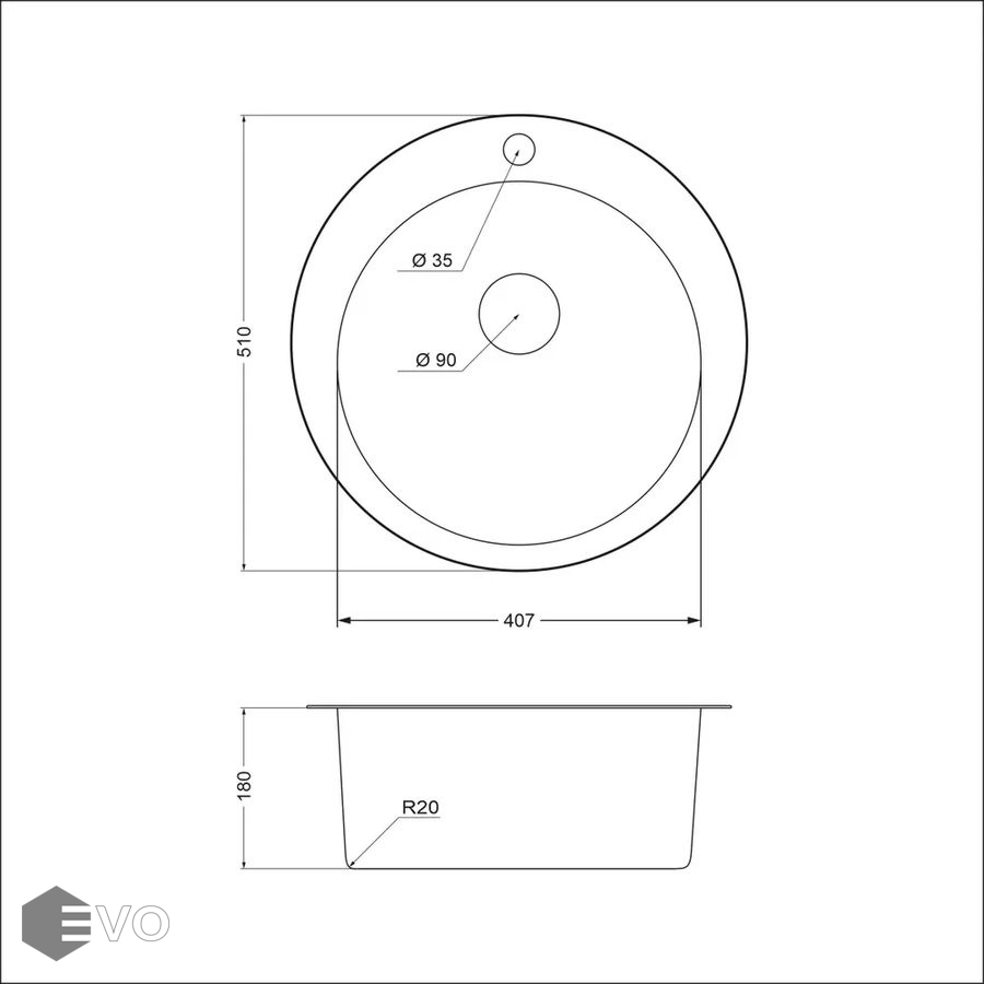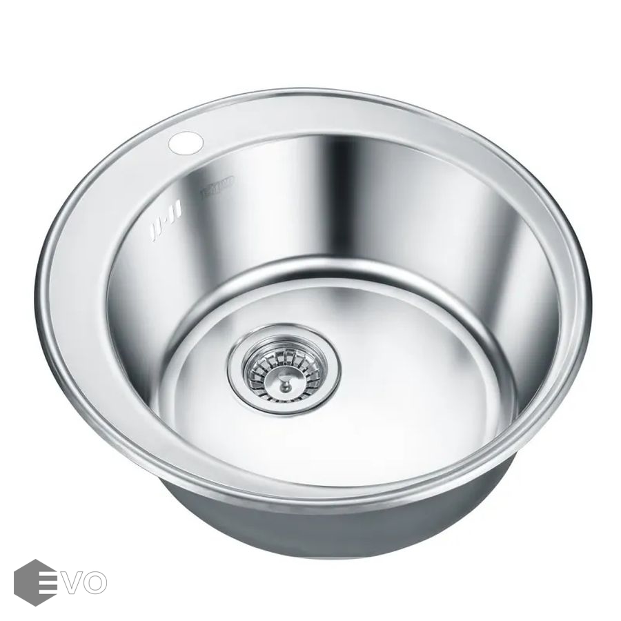 Круглая мойка эконом класса из нержавеющей стали. Поверхность данной модели мойки бывает: глянец / декор / электролиз.