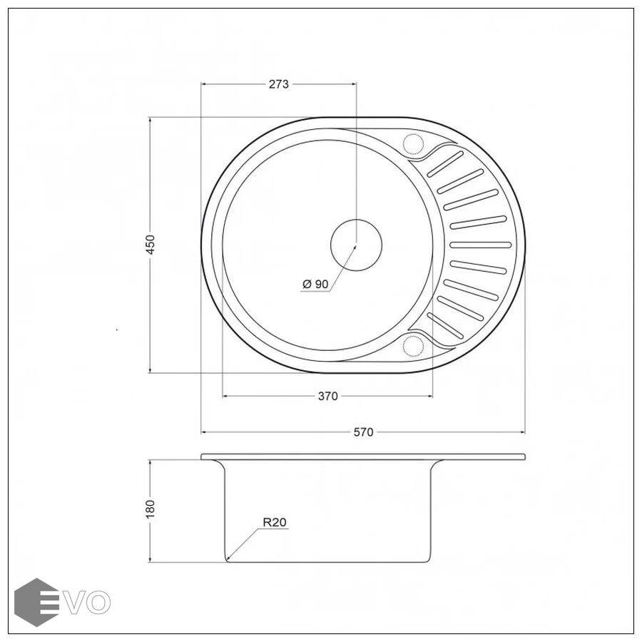 Мойка для кухни: EMAR 5745 - мойка эконом класса из нержавеющей стали с матовой поверхностью (электролиз).