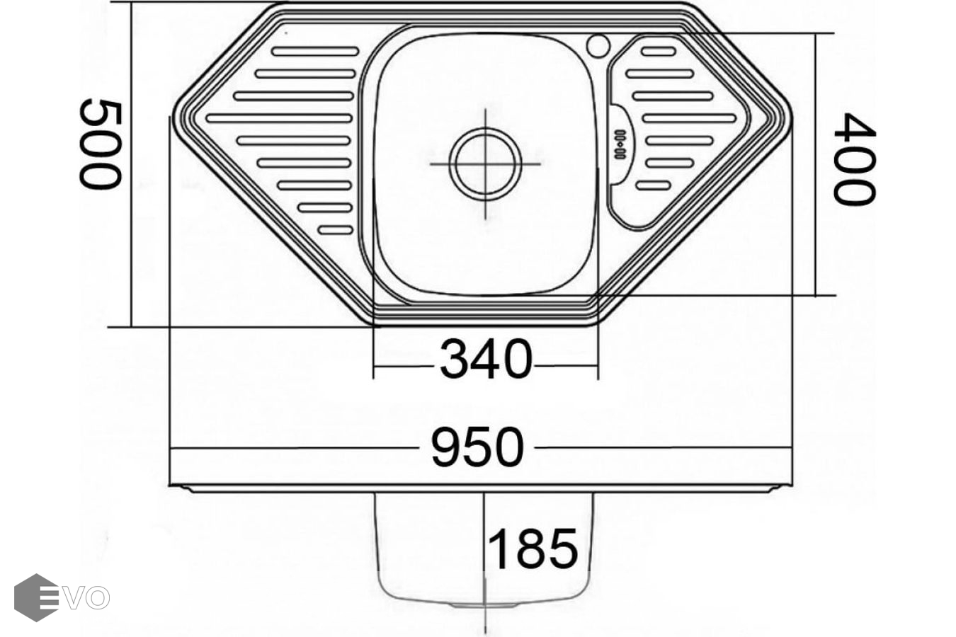 - Габаритные размеры мойки: 950x500 мм