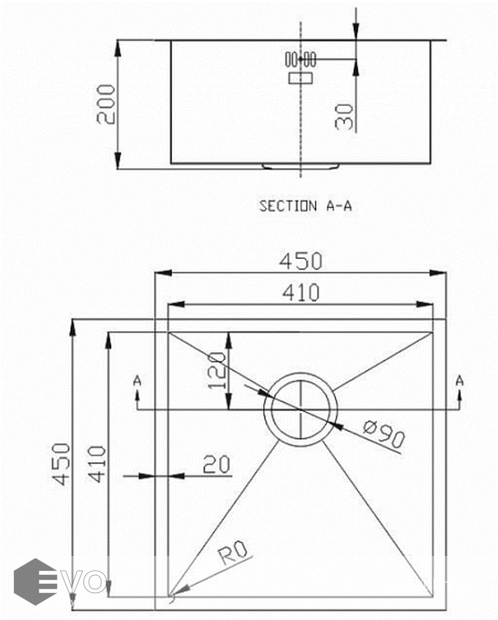 - Размер мойки, мм: 450х450