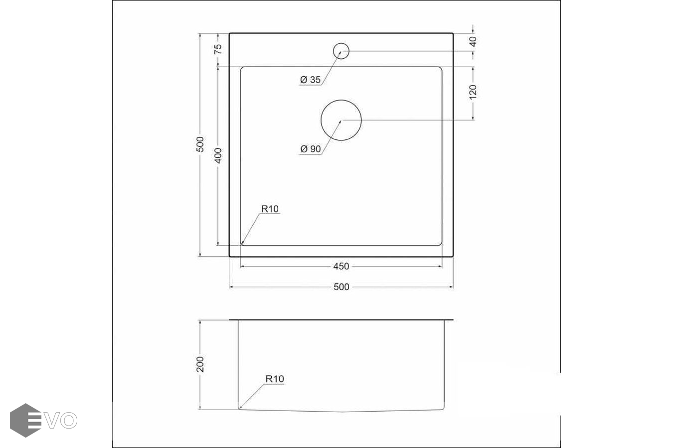 Оснащена удобным бортом, толщиной 2 мм, с двумя отверстиями - под смеситель и встраиваемый дозатор. С нижней стороны и по бокам предусмотрены шумопоглощающие накладки. Имеет R5 радиус закругления с внешней стороны. Внутренние углы с R10 радиусом закругления.