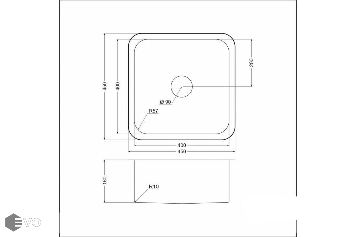 Имеет R59 радиус закругления с внешней стороны. Внутренние углы с R57 радиусом закругления.