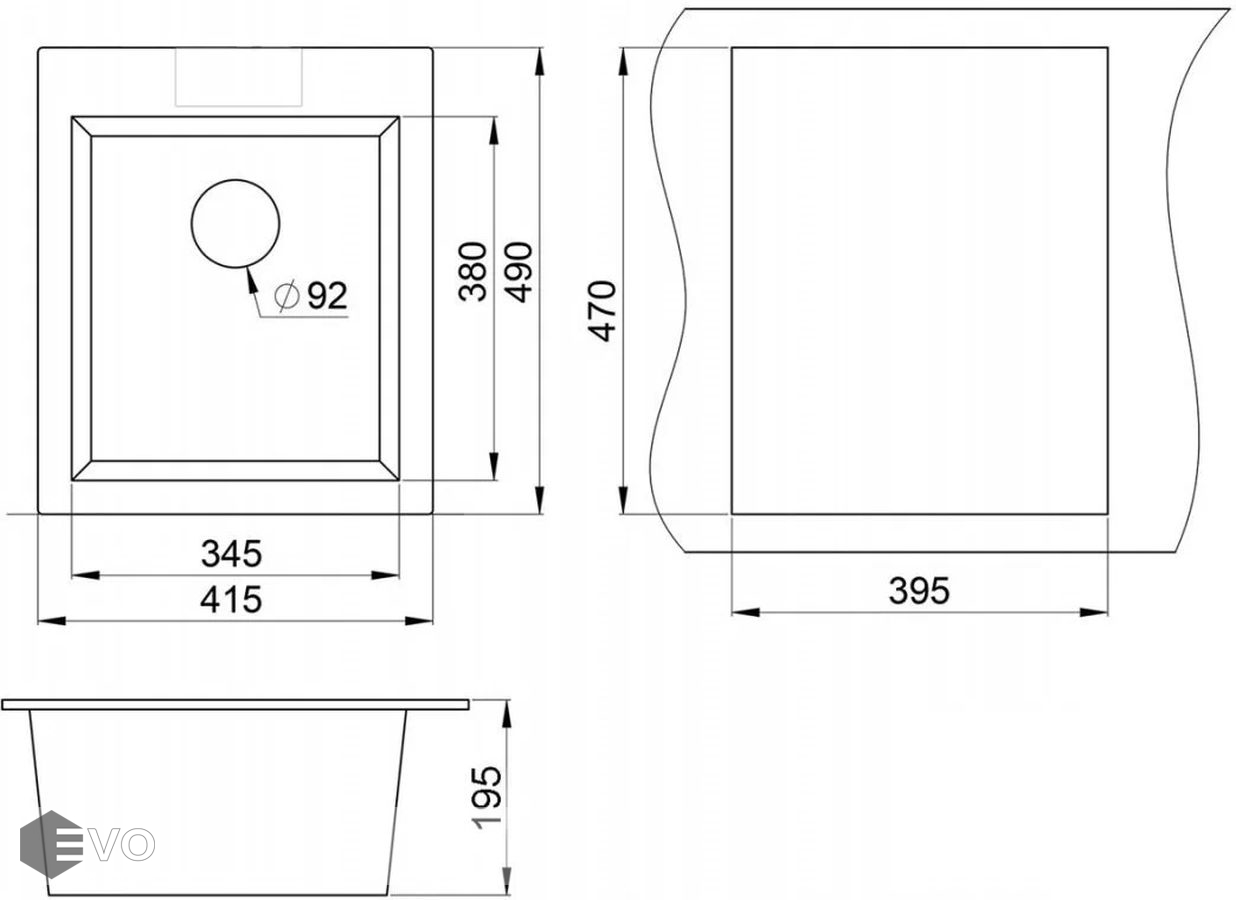 • Размеры мойки: 415x490 мм