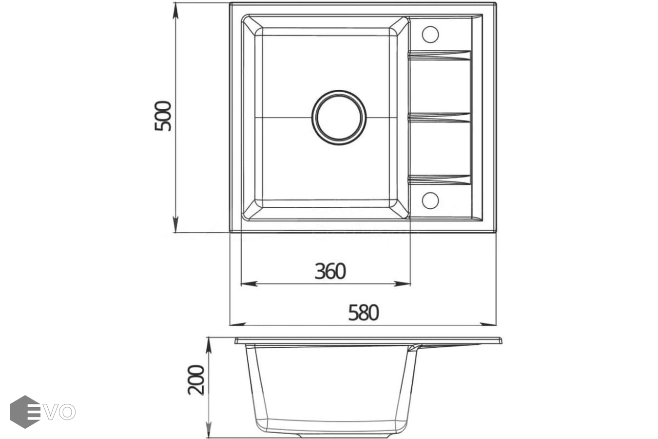 Кухонная кварцевая мойка EMAR EMQ-1580.Q, производится из кварцевой крошки и смолы. Идеально подходит для компактных и современных кухонь.