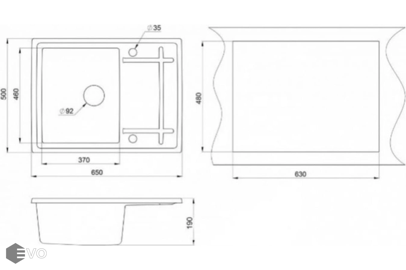 - Размеры мойки: 650х500 мм