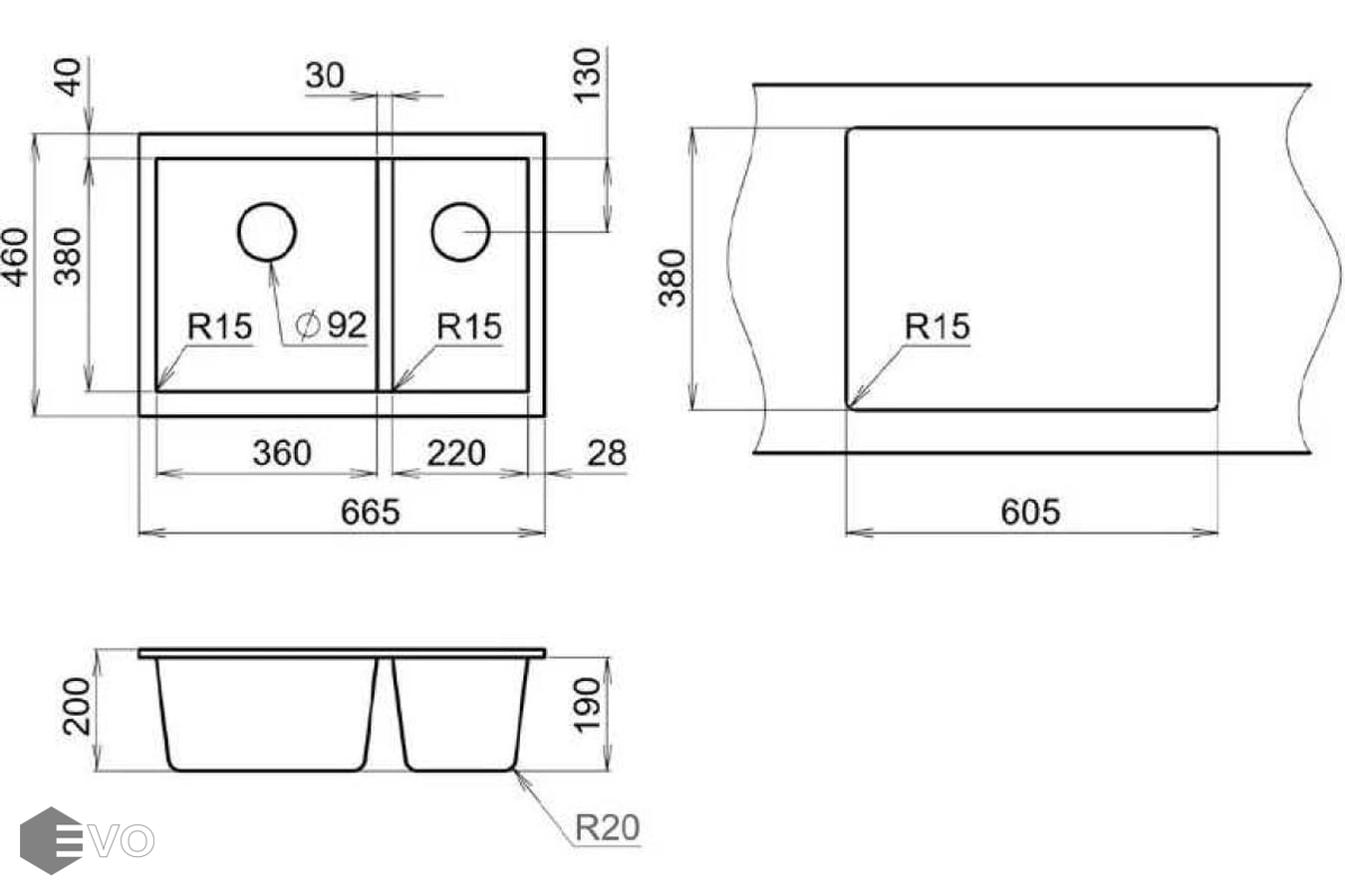Кварцевая мойка EMAR EMQ-2665.PL Барит имеет две удобные чаши с популярными размерами. Мойка сделана из кварцевой крошки на всю глубину материала. Чаши имеют оптимальную глубину, гигиеничны и безопасны в использовании. Устойчива к появлению сколов и потертостей. Возможен врезной и подстольный монтаж. Габариты изделия позволяют осуществить монтаж в кухонный шкаф от 700 мм.