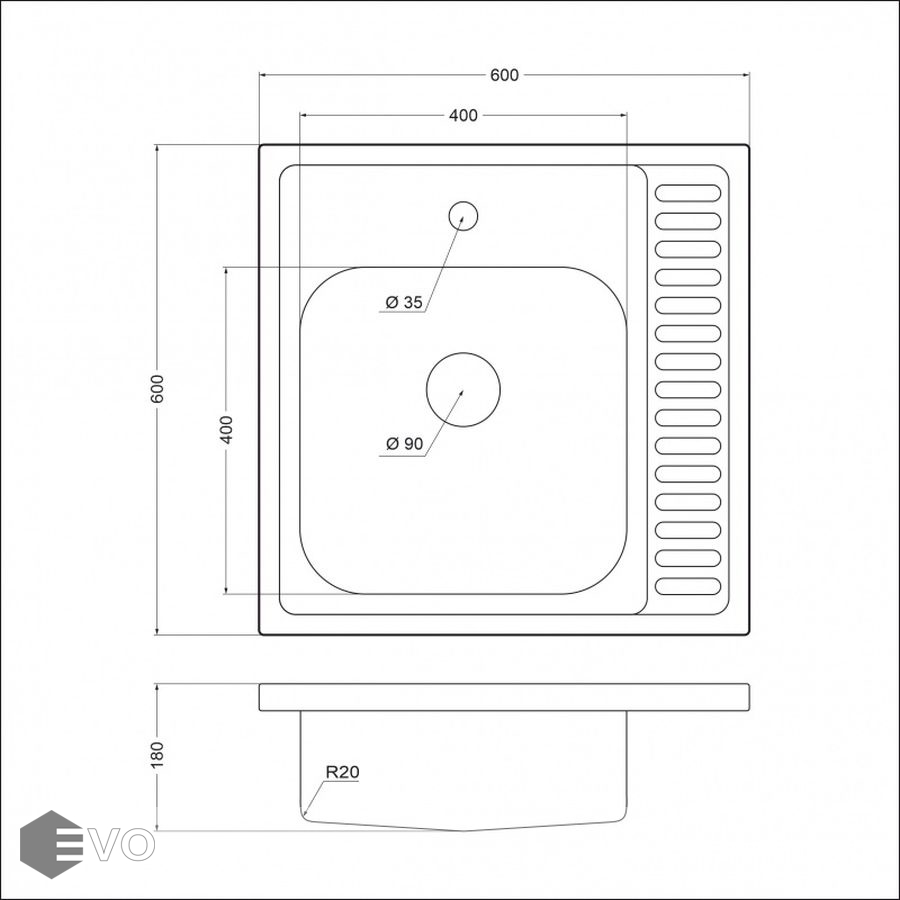 - Форма мойки: квадратная