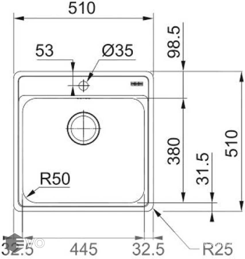 - Размер мойки: 510 x 510 мм
