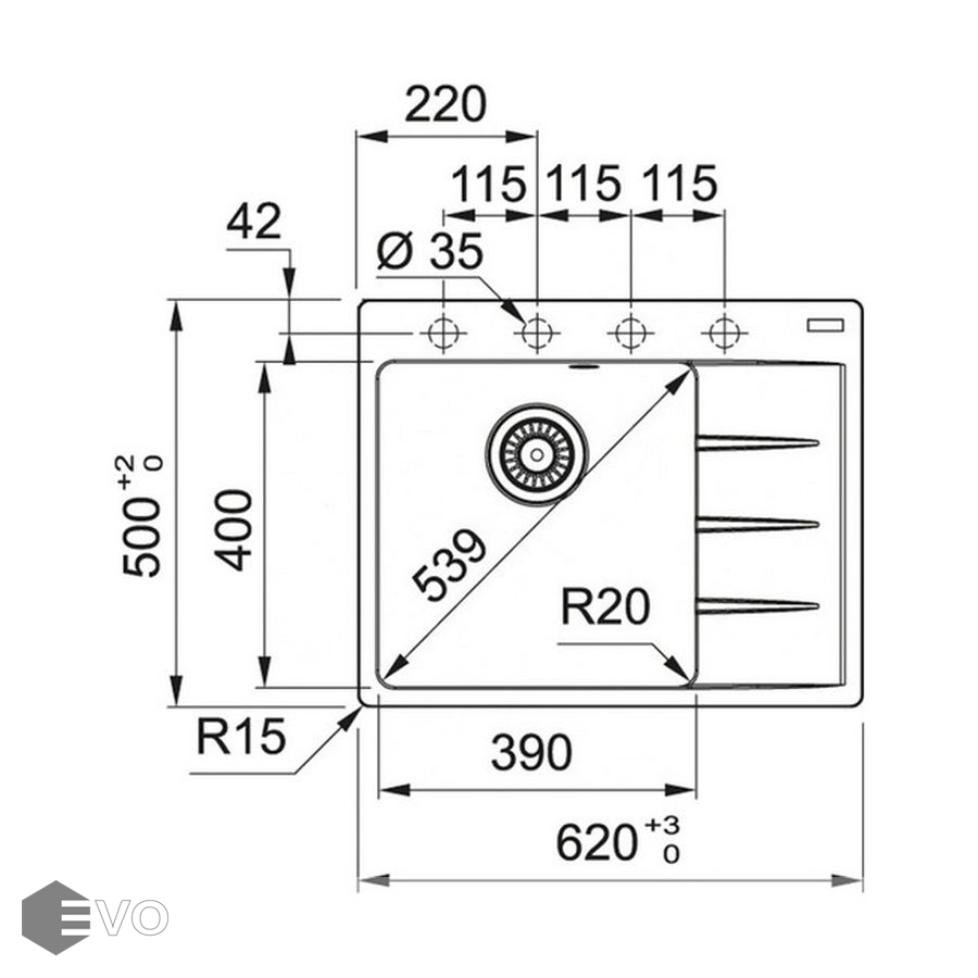 - Размеры мойки, см: 62х50х20