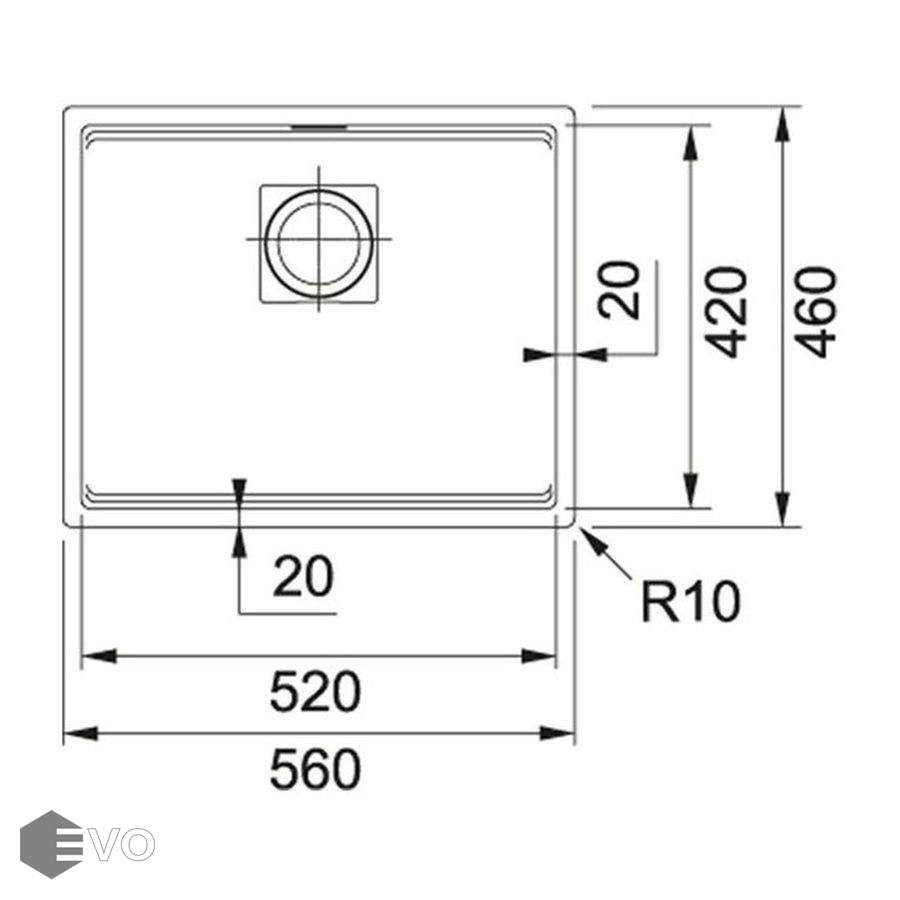 Мойка из запатентованного материала FRAGRANITE®, врезная под столешницу, прямоугольная с переливом и декоративной накладкой на выпуск из нержавеющей стали, вентиль-автомат с кнопкой EASY CLICK из нержавеющей стали.