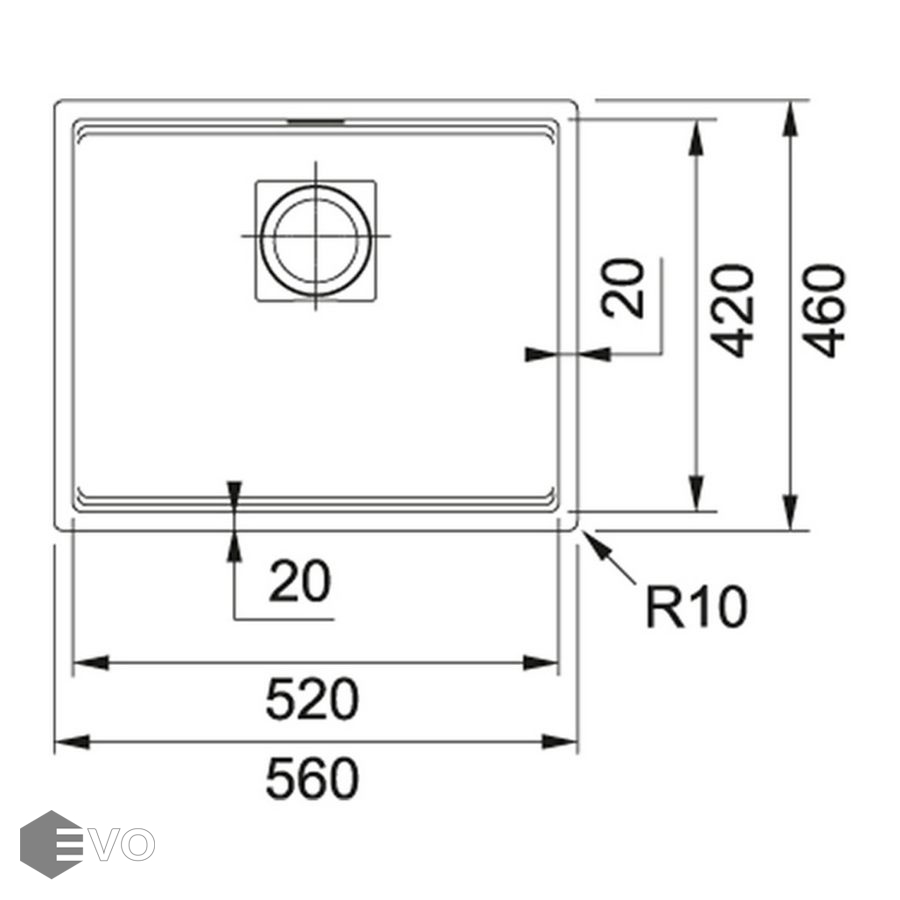 Мойка из запатентованного материала FRAGRANITE®, врезная под столешницу, прямоугольная с переливом и декоративной накладкой на выпуск из нержавеющей стали, вентиль-автомат с кнопкой EASY CLICK из нержавеющей стали.