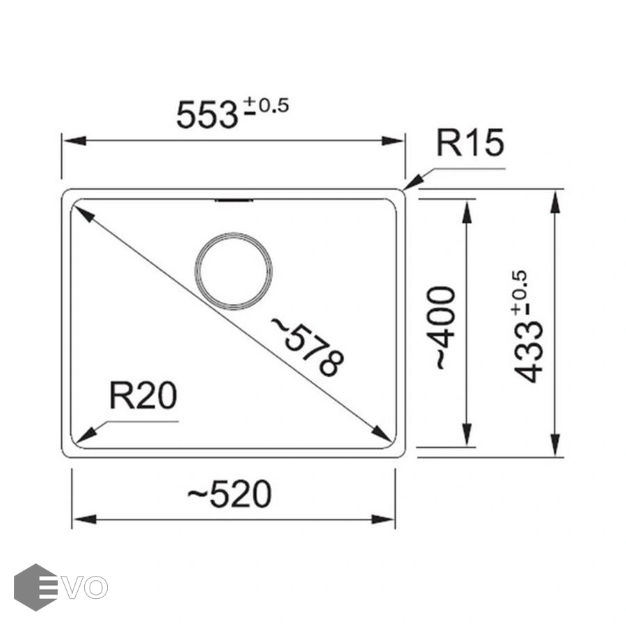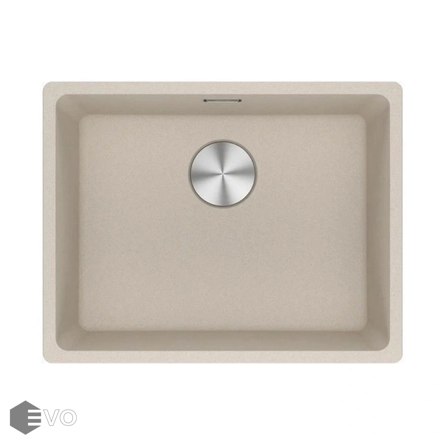 Мойка из запатентованного материала FRAGRANITE®, врезная под столешницу, прямоугольная с переливом и декоративной накладкой на выпуск из нержавеющей стали, вентиль-автомат, сифон.