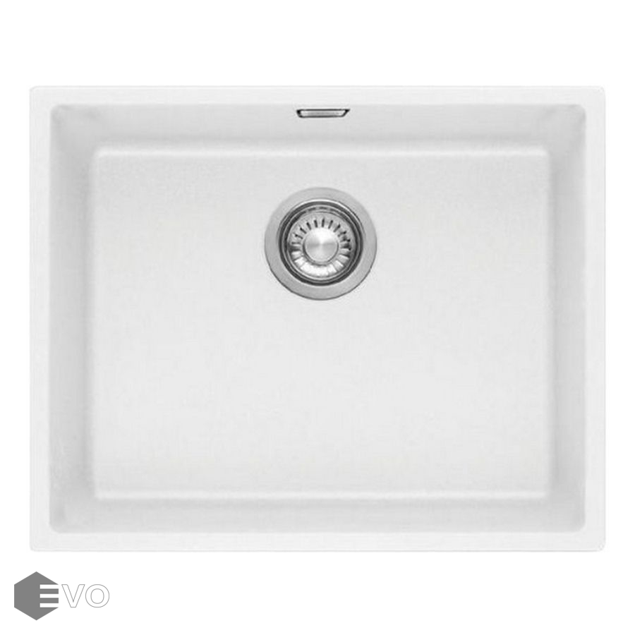 Мойка из материала Tectonite (композитный полимер), врезная под столешницу, прямоугольная с декоративным переливом.