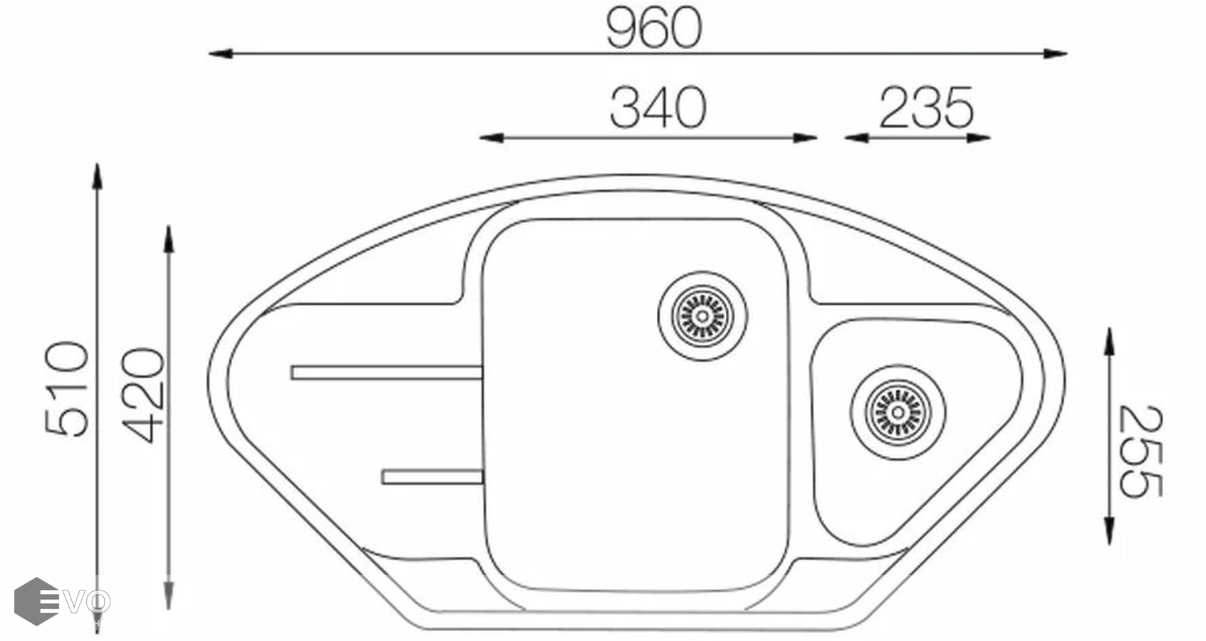 - Форма: Угловая, 2 чаши