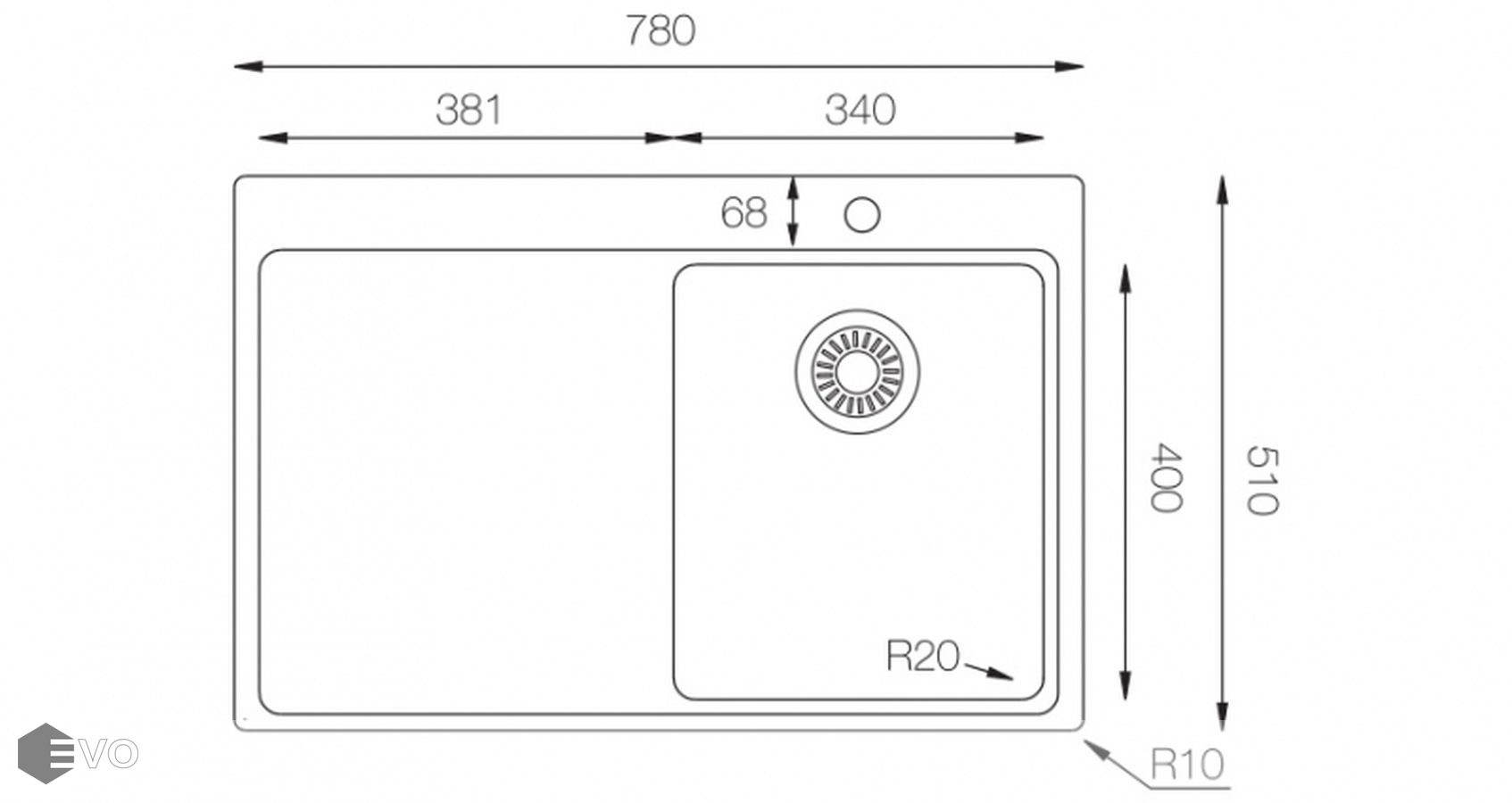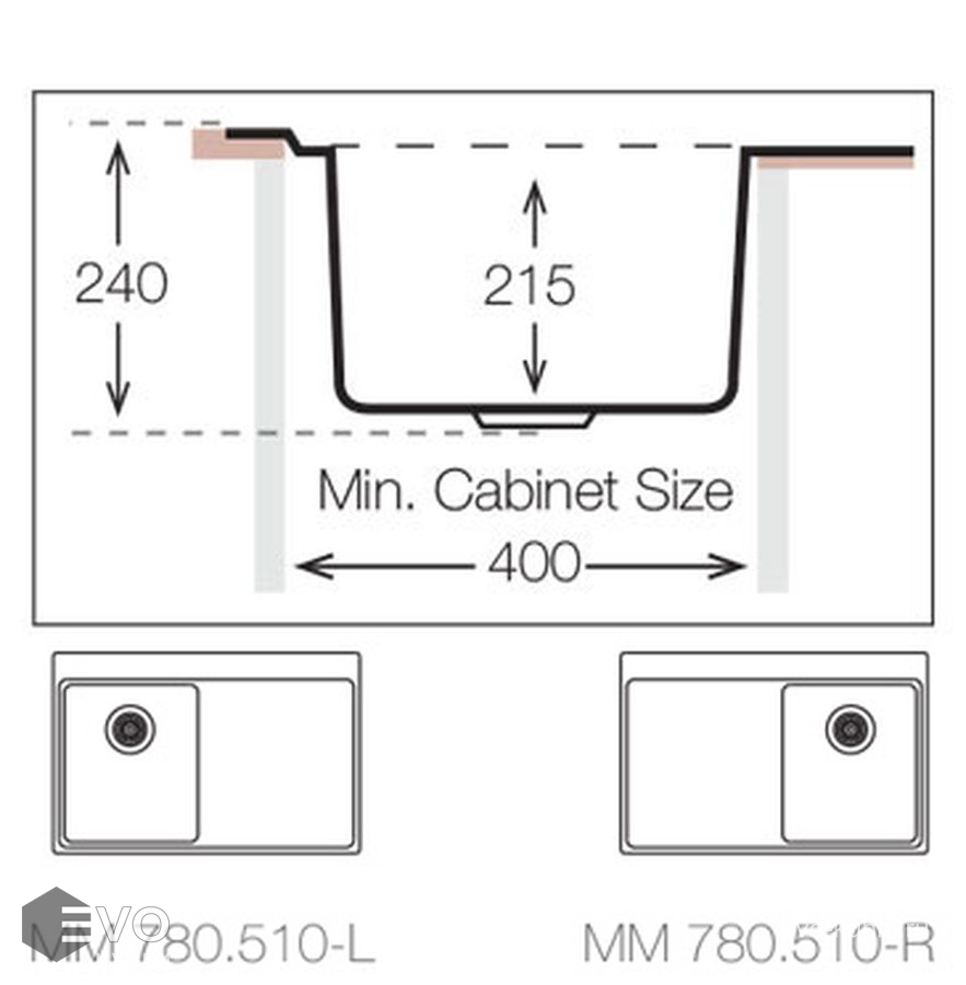 TopZero Micro MM780.510 (чаша справа) - элегантная одночашевая мойка для стандартного врезного монтажа или в один уровень со столешницей.