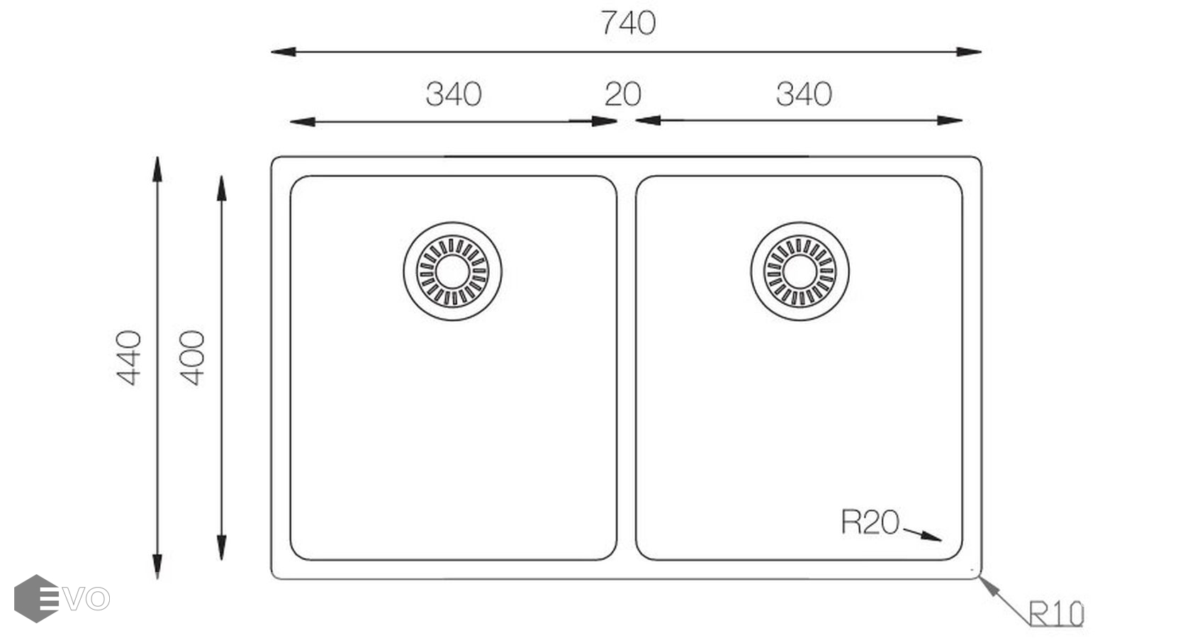 - Форма: Прямоугольная 2 чаши