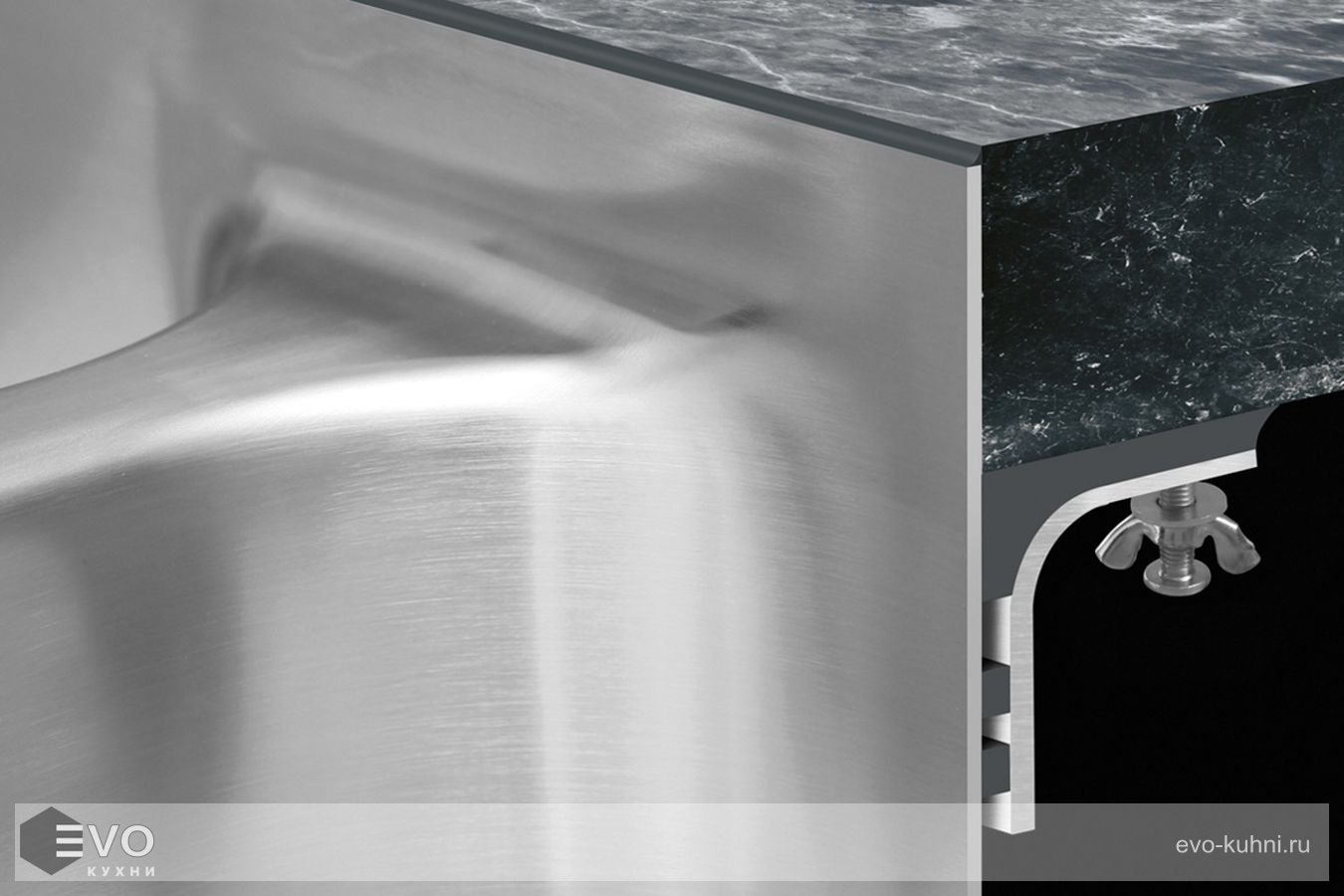 Настоящий патент ТопЗеро позволяет монтировать мойку из нержавеющей стали в кварц, гранит, мрамор или любую другую твердую поверхность "без швов", что помогает избежать скопления бактерий и грязи между мойкой и столешницей.