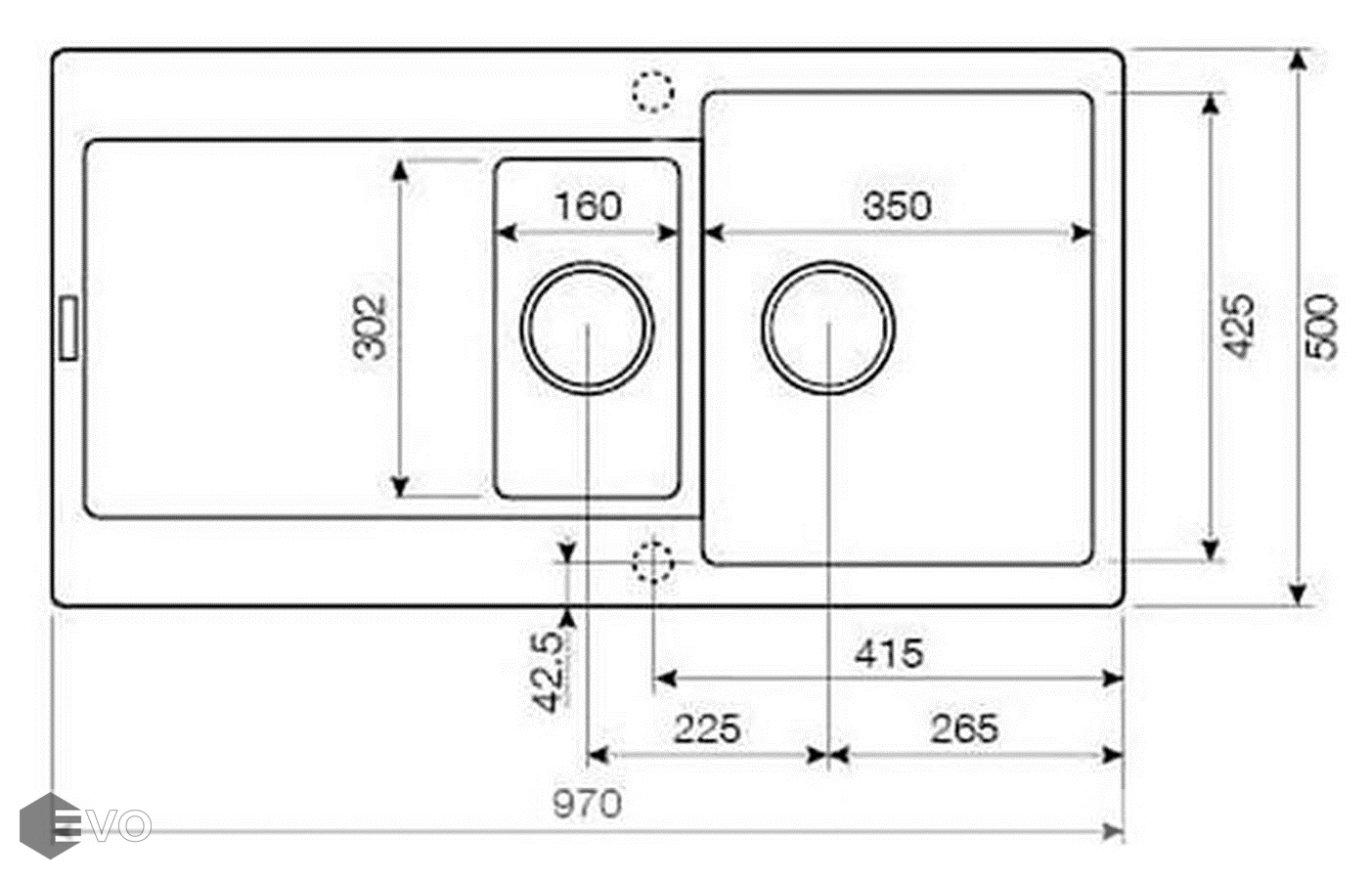 - Длина мойки: 970 мм