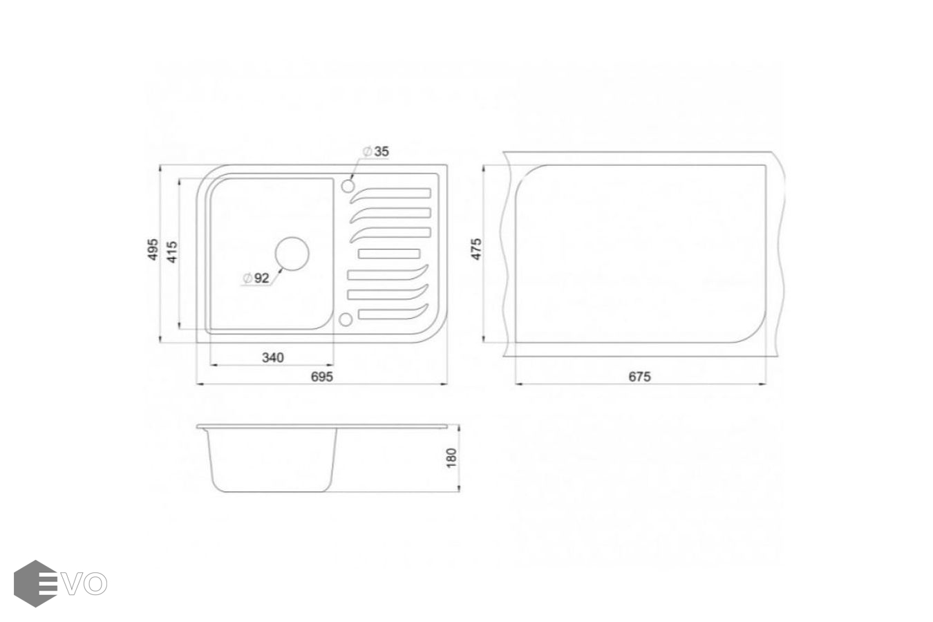Мойка EMAR EMQ-1695.Q - из кварцевой крошки и смолы. Идеально подходит для компактных классических и современных кухонь.