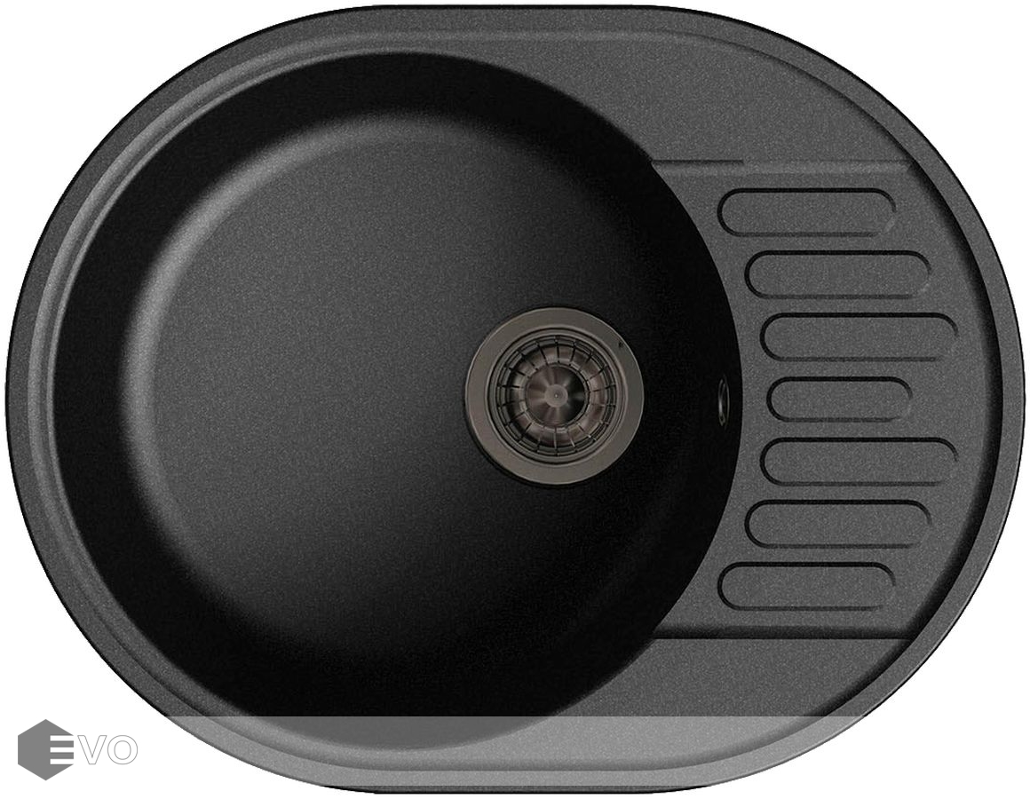 Врезная модель овальной формы устанавливается в столешницу. Эта черная мойка оборачиваемая, поэтому, в зависимости от пожеланий владельца, ее крыло при установке может быть направлено как в левую, так и в правую сторону (отверстие под смеситель высверливается в зависимости от его расположения).