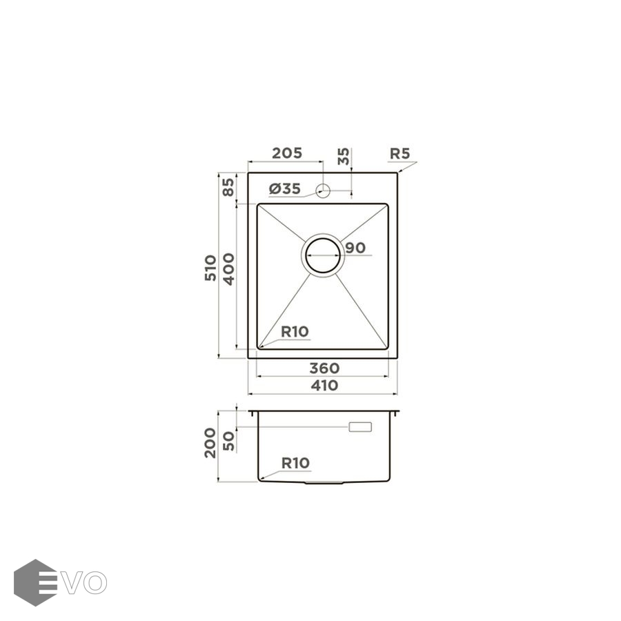 Размер мойки 410х510