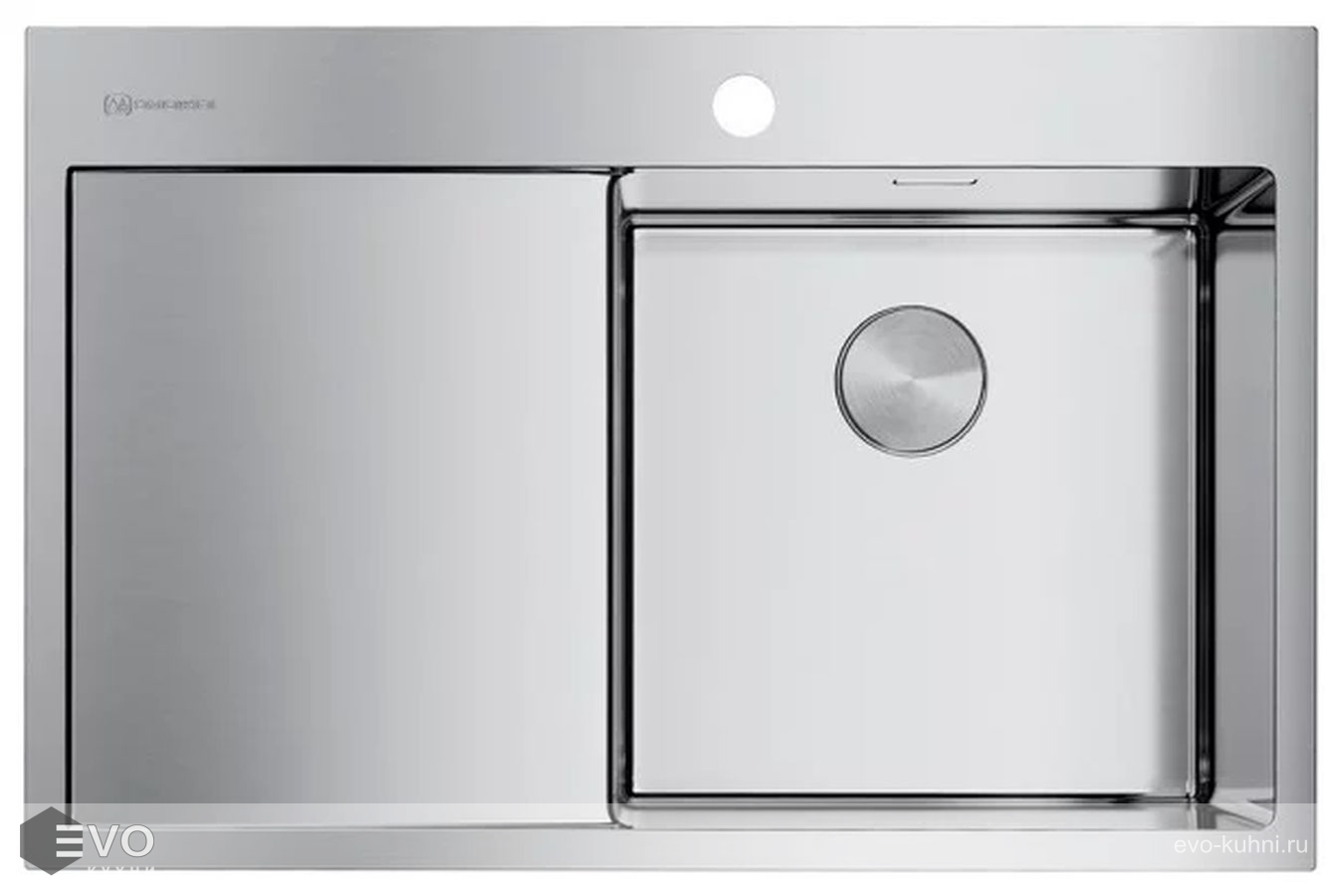 Переливное отверстие расположено в чаше мойки