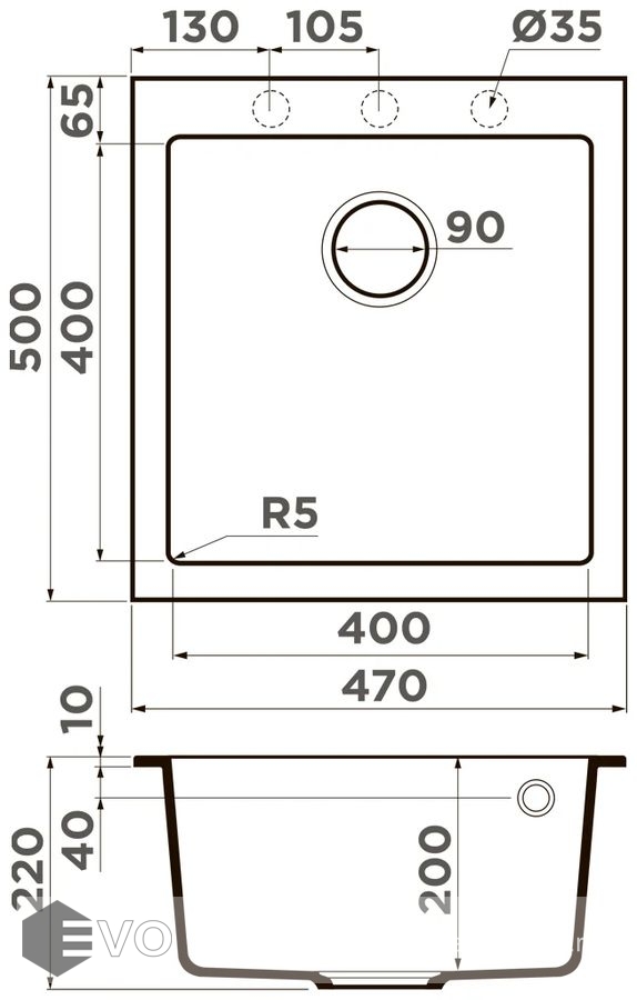 - Форма мойки прямоугольная