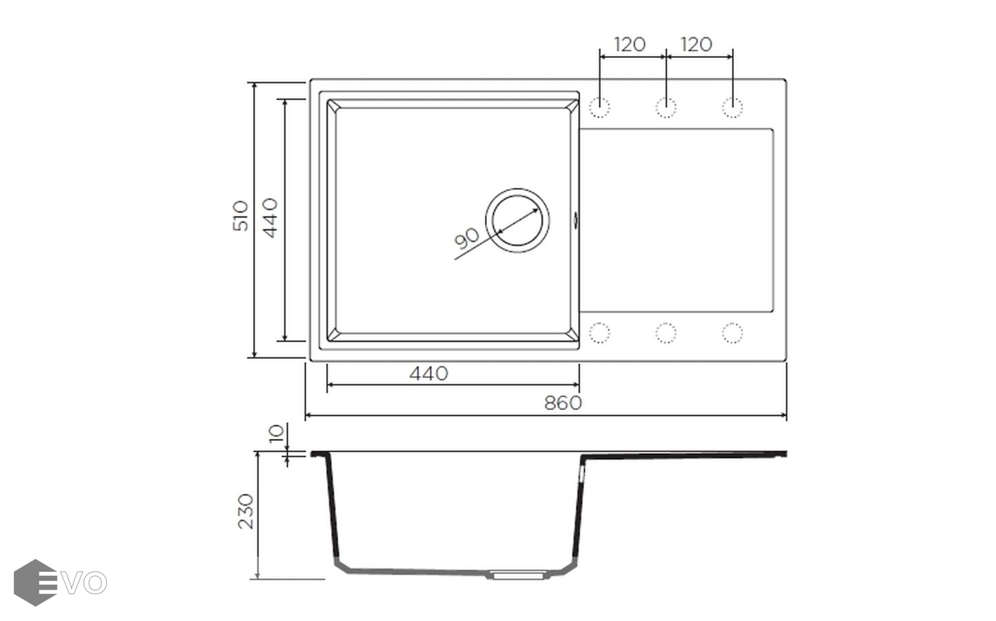 • Размер мойки 860x510 мм