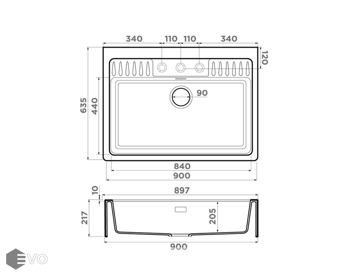 - Размер выреза под мойку: По образцу мойки