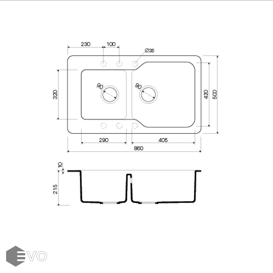 - Размер мойки 860x500 мм