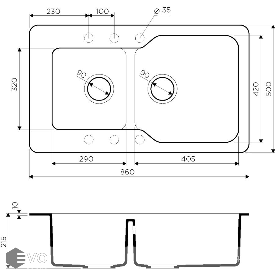 - Размер мойки 860x500 мм
