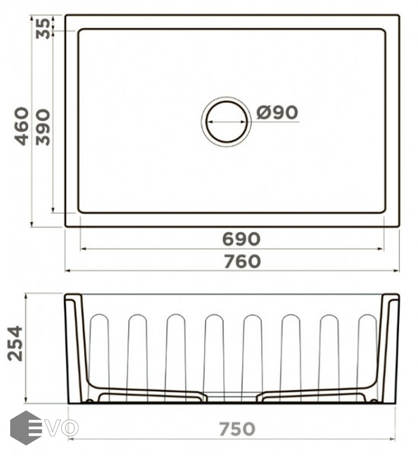 - Размеры мойки: 76x46 см