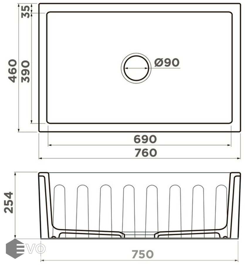 - Размеры мойки: 76x46 см