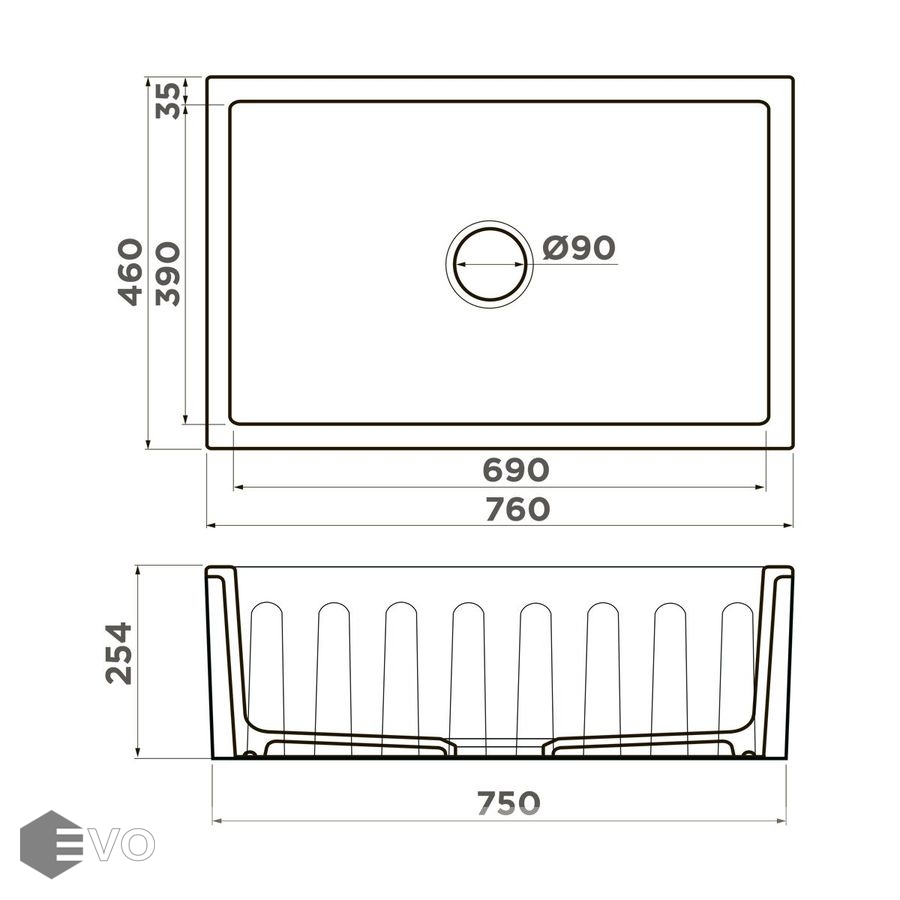 - Размеры мойки: 76x46 см