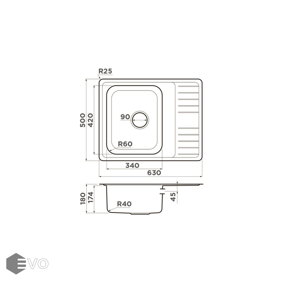 - Размер мойки: 630x500